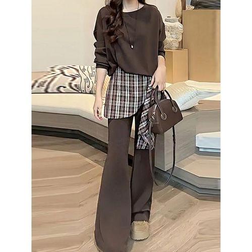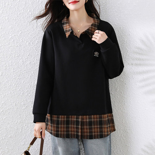 [신상오픈런]여성 체크 패턴 루즈핏 레이어드 맨투맨 셔츠