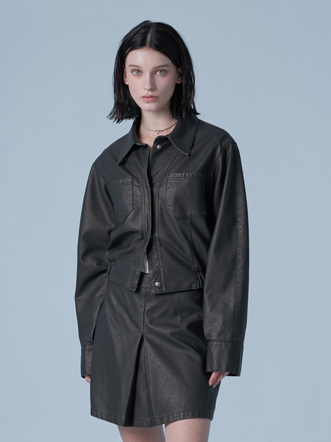 [버커루](버커루) [U.T] 유니 비건 레더 블루종 자켓 (B255LI050P)_DJ