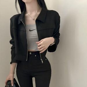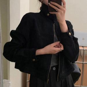 여성 스웨이드 루즈핏 밑단밴딩 캐주얼 깔끔핏 데일리룩 데이트룩 패션 숏자켓 카라집업자켓