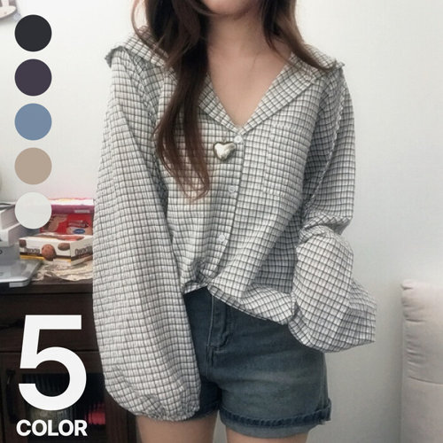 입꼬 / 모르간 체크 루즈핏 후드 셔츠 바람막이 5color