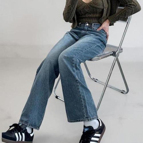 [다잇템_패션]여성 FW 세미 나팔 빅사이즈 캣워싱 청바지