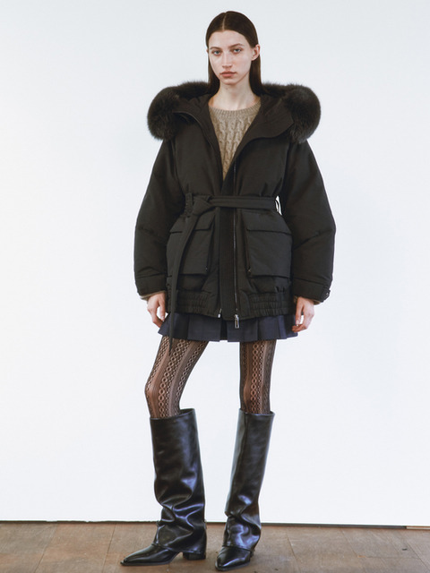 [하시에] 오버핏 구스다운 벨트 파카 [라이트카키] [블랙]