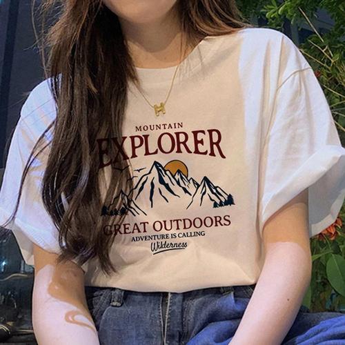 [셀러허브_여성트랜드패션]오버핏 반팔티 화이트티셔츠 산프린팅 프린트반팔티 남성스트릿룩 캐주얼룩