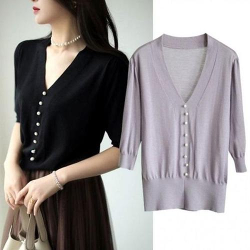 [엄지척]브이넥 7671 5부 니트티 CESS 2색상_19679638_667501