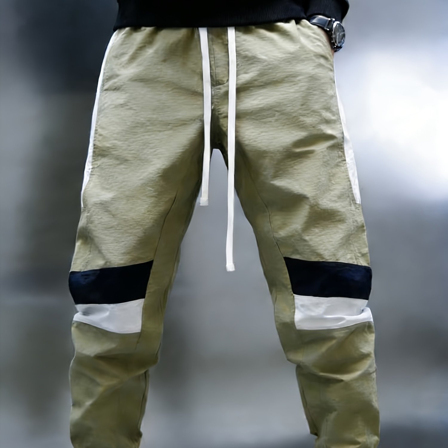 TEMU 새로운 컬러 블록 남성용 테이퍼드 캐주얼 바지 (봄/여름용), 가볍고 탄성 허리 밴드, 스타일리시한 헤어럼 디자인의 트렌디한 조거 팬츠