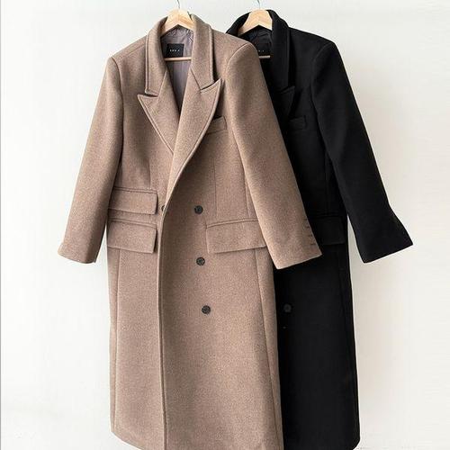 여자 겨울 연말룩 더블버튼 박시 검정 롱코트