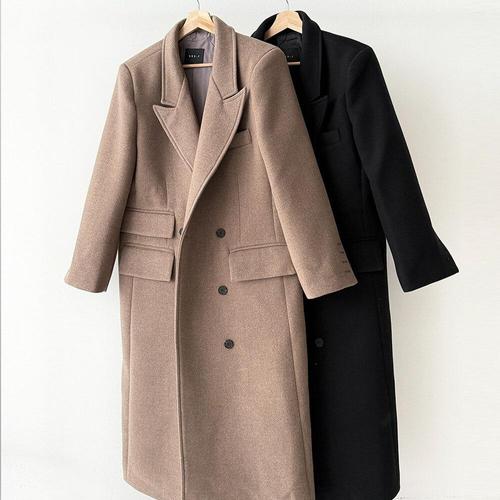 [옷자락] 여성 겨울 연말룩 카라넥 더블버튼 페이크포켓 롱코트