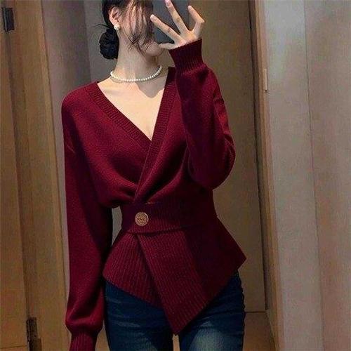 [아리엘스타일]브이넥 랩니트 연말룩 마티카니트탑
