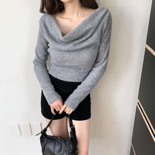 [옷자락] 여자 오프숄더 연말파티룩 겨울 골지 셔링 니트