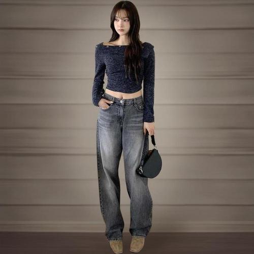 [미라클세븐]여성 오프숄더 크롭 니트 연말룩 아일렛 포인트