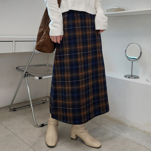 옷자락 / 여자 연말 데이트룩 A라인 배색 체크 울 롱스커트
