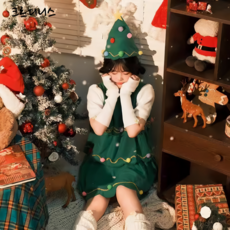 크리스마스 트리 파티 원피스 세트 모자 연말원피스 트리 코스튬