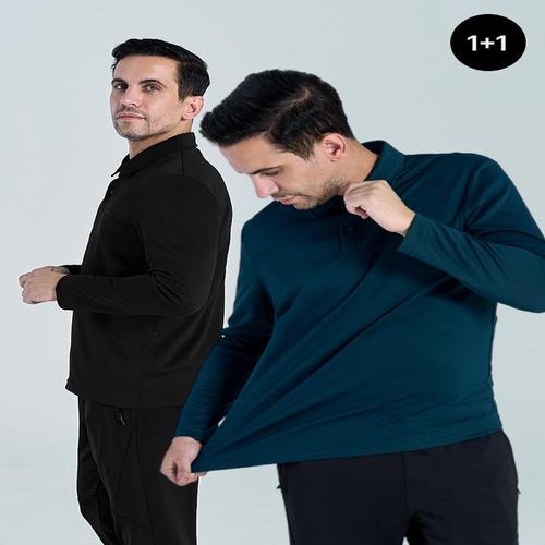 [마운틴벨리][신상][1+1] 솔리드 스냅 카라 긴팔 티셔츠