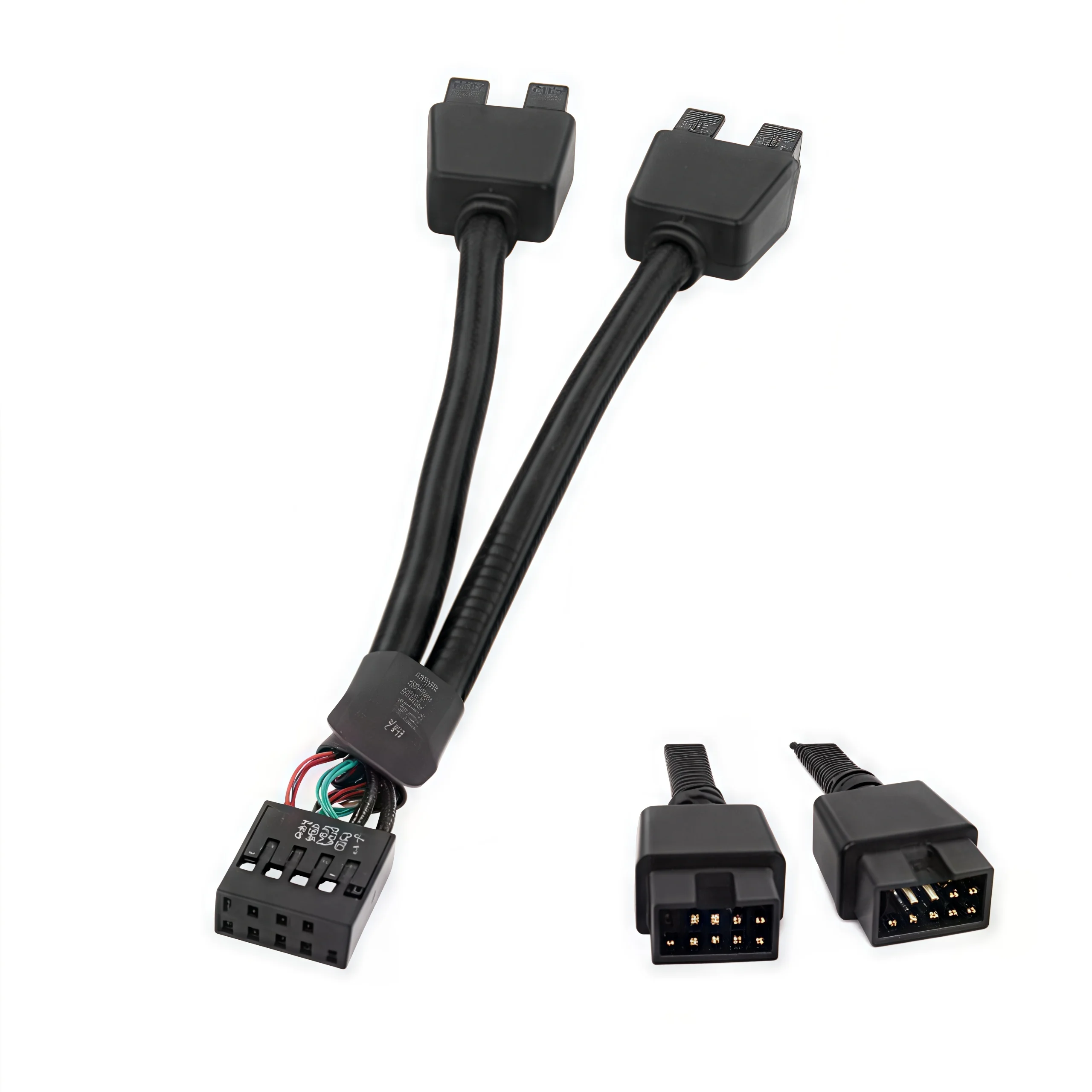 12cm 9핀 USB 2.0 Y 스플리터 케이블 - 여성형에서 듀얼 남성형으로 PC 전면 패널 오디오 및 HD용 마더보드 연장 케이블