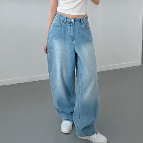 [옷자락]여자 박시 와이드 워싱 히든밴딩 연청 힙한 봄 청바지
