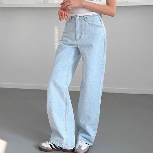 [옷자락] 여자 데일리 편안한 연청 와이드 일자 청바지