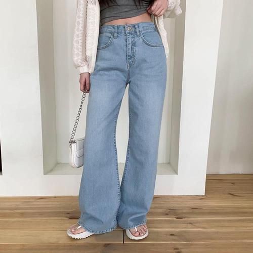 [옷자락]여자 데일리 편안한 연청 와이드 일자 청바지