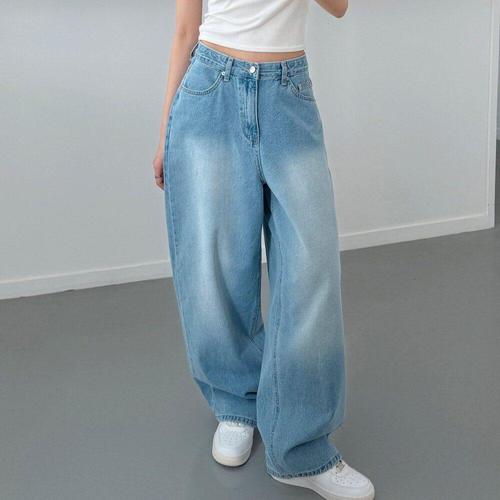 쏘옷 여성용 어센틱 워싱 하이웨이스트 와이드핏 데님 청바지 면100% 사계절