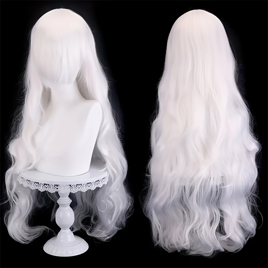 TEMU 32인치 엑스트라 롱 가발 화이트 퍼플 블랙 베이지 레드 블루 멀티컬러 가능, 앞머리 포함 합성 가발, 음악 페스티벌 할로윈 카니발 코스프레용 독특하고 생동감 있는 헤어