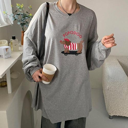 옆트임 라운드넥 긴팔 티셔츠 루즈핏 무지티 데일리 여성티셔츠 맨투맨티