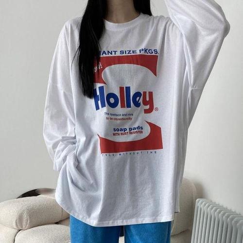 [옷자락] 여자 하트프린팅 레터링 옆트임 가을긴팔 코튼 티셔츠