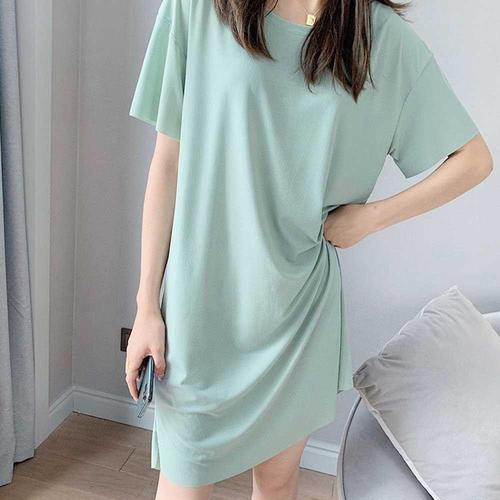 [오너클랜]인기상품 심플 얇은 여름 반팔 미니원피스 홈웨어 무지 옆트임 [WF8C634_260403]