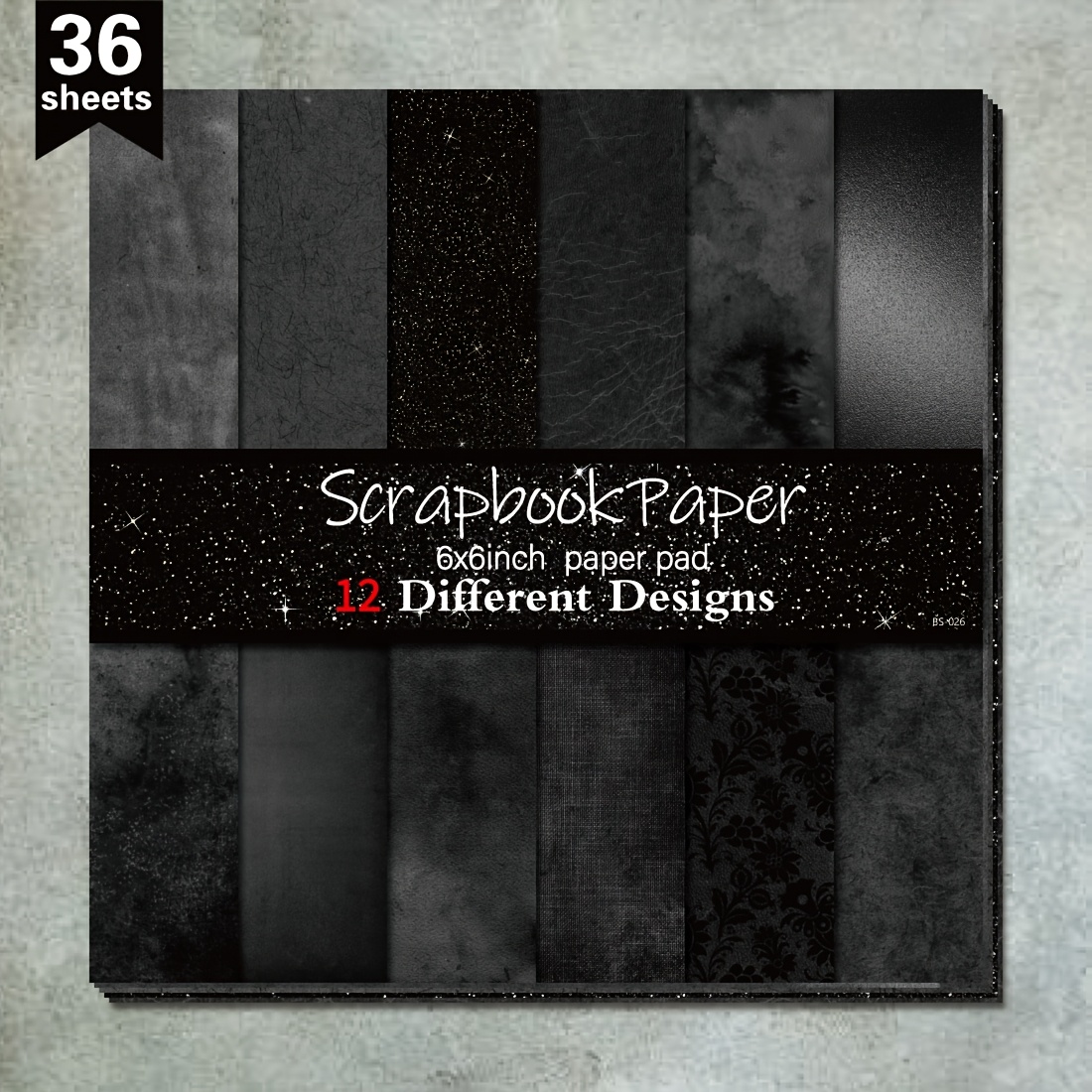 TEMU 36장의 6x6인치 스크랩북 종이, 다이어리 스크랩북 용품 키트 미적 장식 선물 포장 앨범 플래너 장식용 종이 공예 재료, 스크랩북 카드스톡 종이에 적합한 아트 크래프트 패턴 종이 - 검은 별빛 하늘