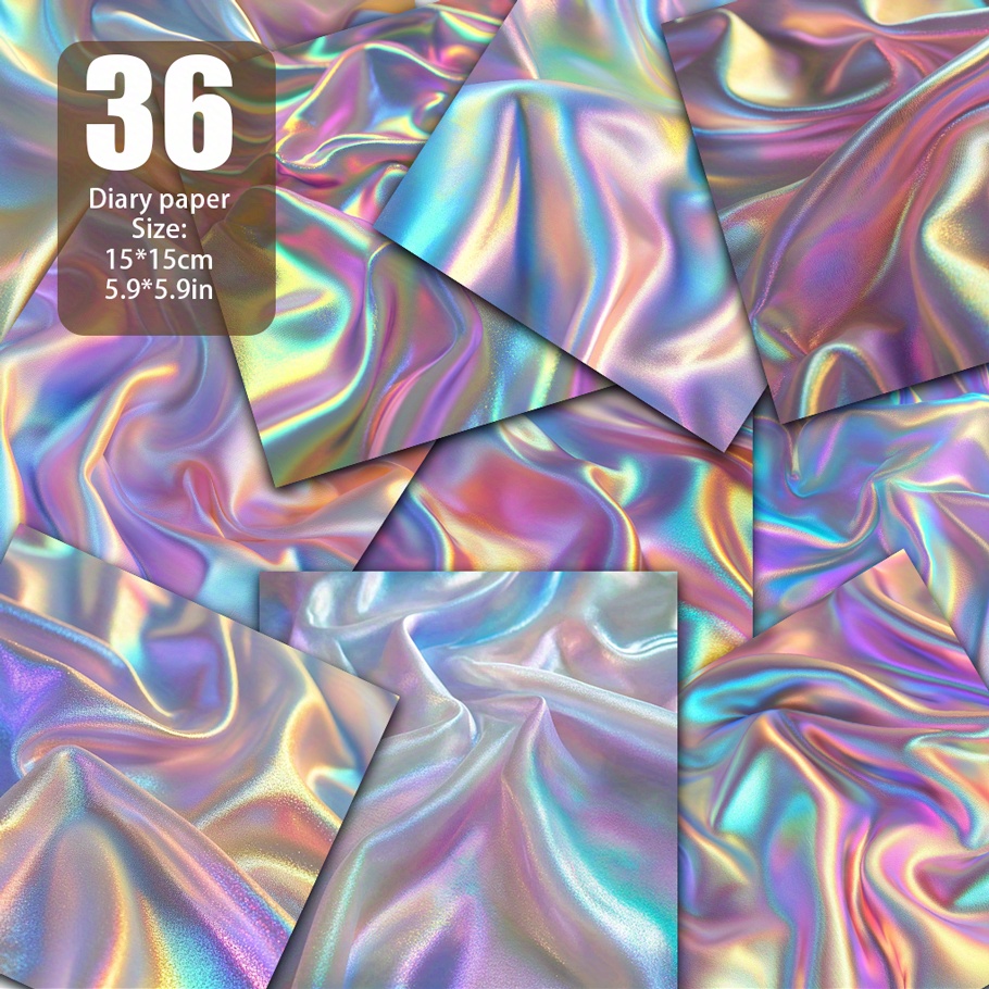 TEMU 36장의 아일러디언 홀로그래픽 스크랩북용 종이 - 메모리 앨범, 인사 카드, 배경, 크래프트용으로 부드럽고 반짝이는 패스텔 색상, 5.9" x 5.9" 크기, 메모리 앨범 | 패스텔 색상 | 부드러운 텍스처, 스크랩북 용품