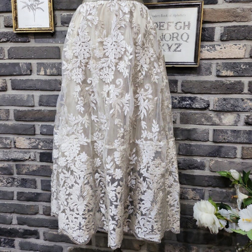 퐁당 / 플라워 오간자 자수 레이스 밴딩 스커트