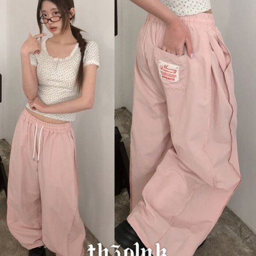 더핑크 / 럼디 밴딩 오버로크 핀턱 패치 트레이닝 팬츠