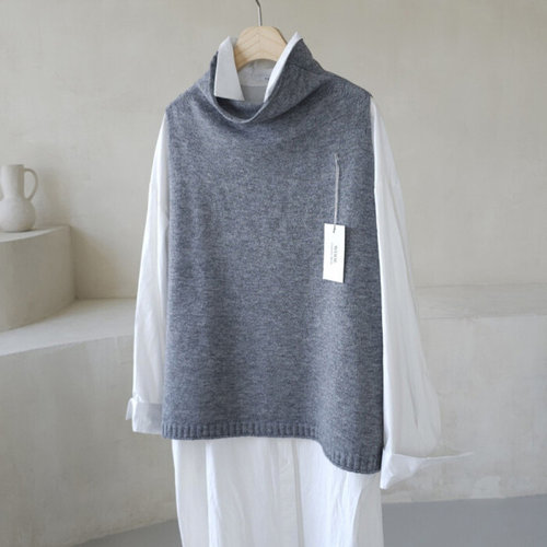 미즈큐즈 / 울 캐시 터틀넥 폴라 루즈핏 니트 조끼 베스트 4color