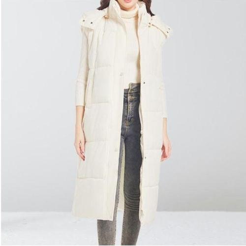 TC 발목까지 오는 패딩 후드 허리끈 조끼 오버핏