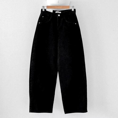 [옷자락] 여성 커브드 루즈핏 와이드 블랙 면바지 데일리 스타일