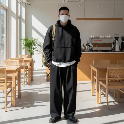 [노멀쉐이크][당일출고][카고/무지] 파칸 무지 후드 오버핏 밴딩 와이드 팬츠 츄리닝 세트