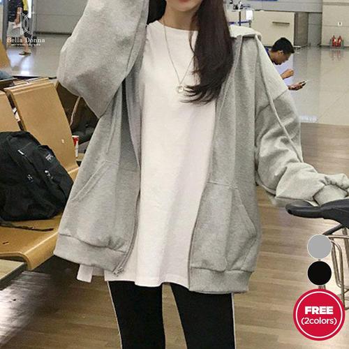 여성 2컬러 데일리 오버핏 무지 후드집업
