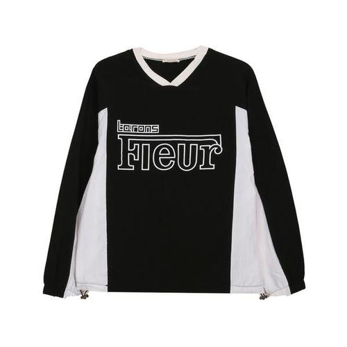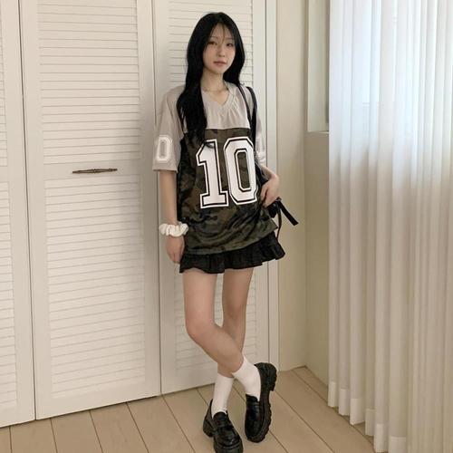 디렉팅 영문 레터링 패치 브이넥 루즈핏 트임 여름 반팔티셔츠 (2color)