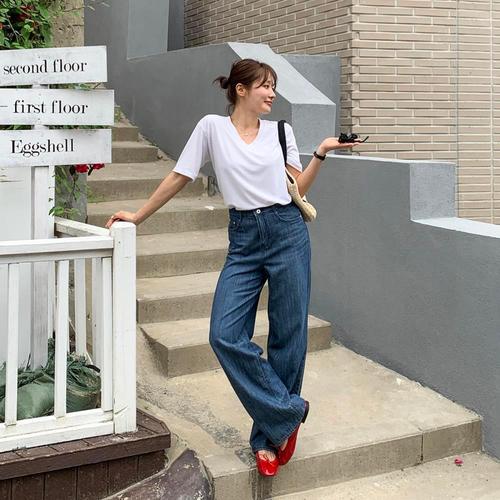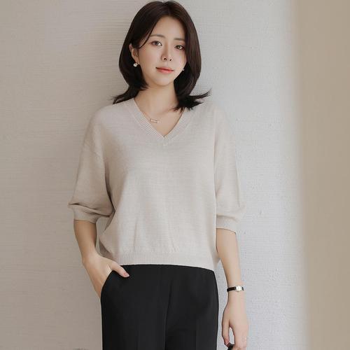 고급 슬림핏 브이넥 루즈핏 반팔 니트 티셔츠