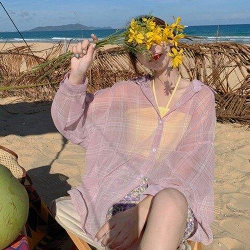 [페리엠]시스루 여름긴팔 자외선 차단 루즈핏 마이린셔츠