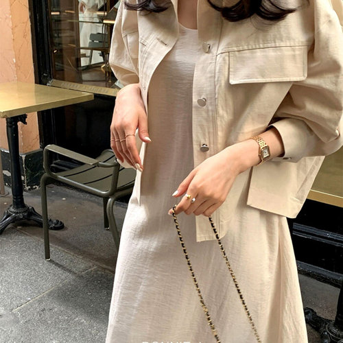 보니제이 / 카라넥 바람막이 셔츠 자켓 베이지 루즈핏 야상 2colo