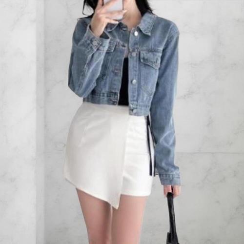 [옷자락]여성 키치무드 워싱 코튼 루즈핏 세미크롭 데님 자켓