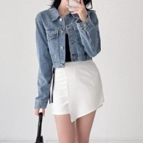 [옷자락]여성 트렌디 더블포켓 루즈핏 데님 크롭 자켓