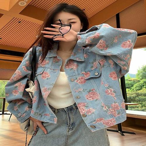 [페리엠]데님 장미 프린팅 루즈핏 엔디프데님자켓