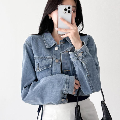 [신상오픈런]여성 루즈핏 크롭 데님 자켓 더블포켓 디자인