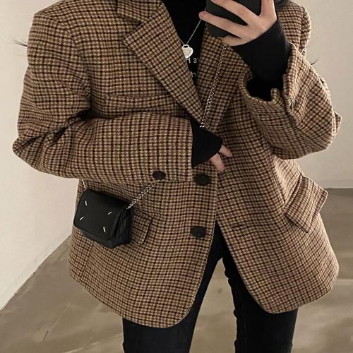 여성 체크 패턴 루즈핏 클래식 자켓 봄 가을 아우터