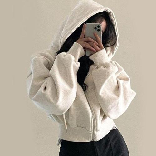 [셀러허브_여성트랜드패션]여자 기모안감 세미크롭 오버핏 후드집업