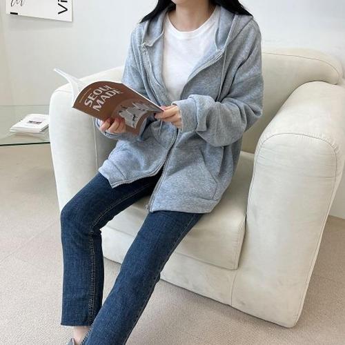 [셀러허브_여성트랜드패션]기모 기본 남여공용 학생 무지 베이직 후드집업 오버핏