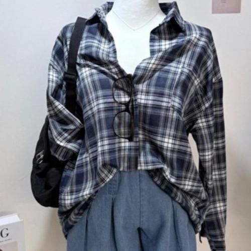 [신상오픈런]|CCH4286|여성 체크 패턴 오버사이즈 긴팔 캐주얼 셔츠_24509801_597559