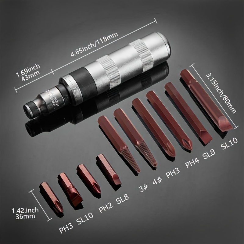 TEMU 12-In-1 임팩트 드라이버 12개 세트, 수동 임팩트 드라이버, 1/2인치 양방향 휴대용 임팩트 공구, 녹거나 얼어붙은 볼트에 적합