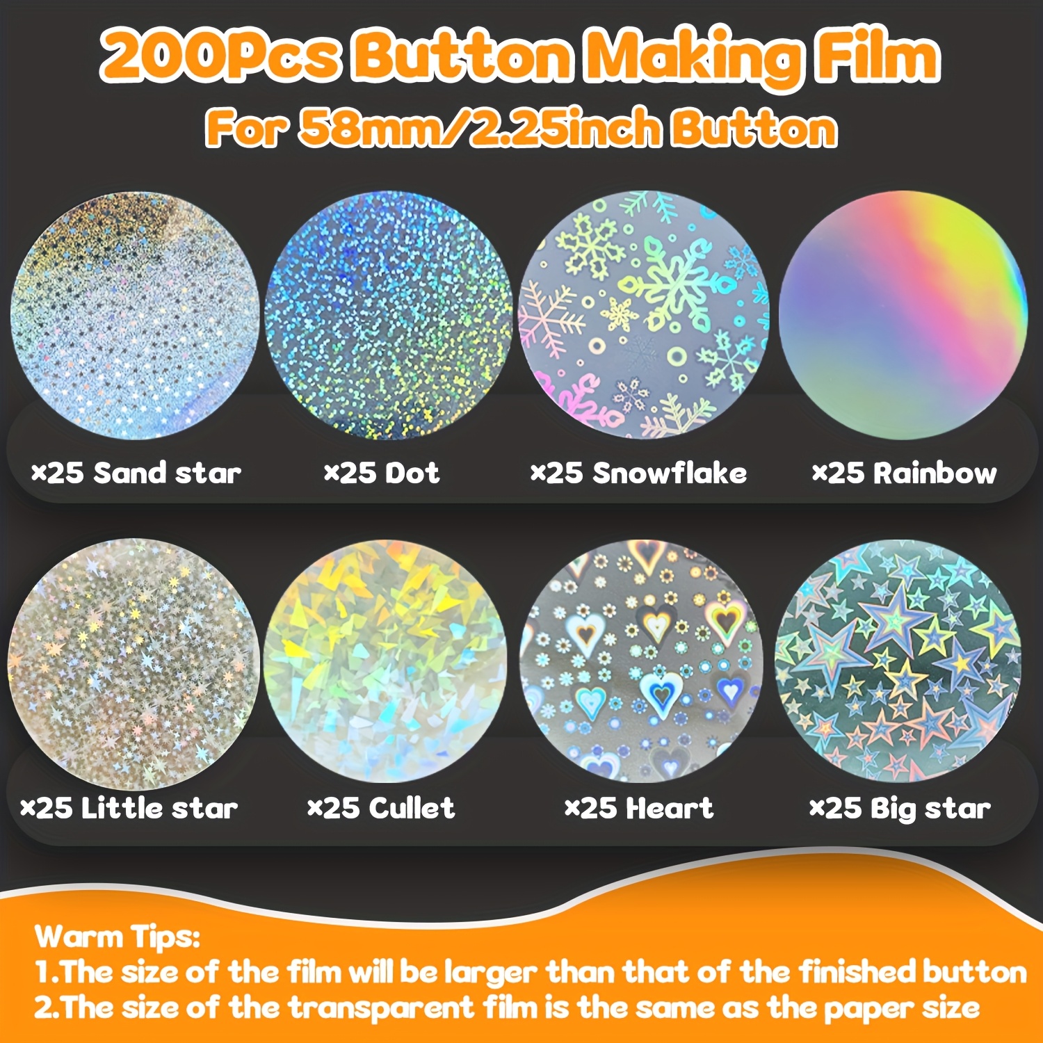TEMU 200개 8가지 스타일 투명 PET 플라스틱 배지 보호 필름, 재봉 및 공예용 - 8가지 색상 변형의 원형 단추 쉴드, 기념품, 배지 제작용 보호 시트 (수정 불가)