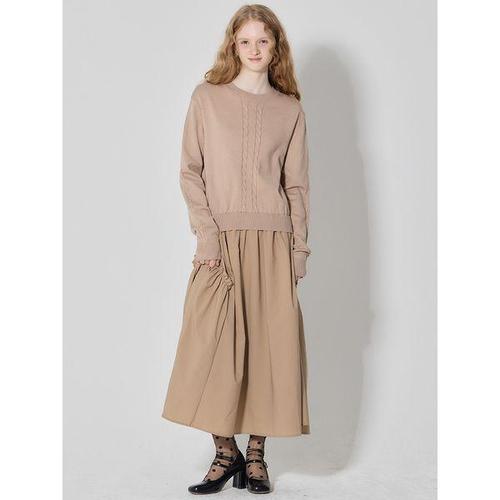 [오조크]라운드넥 우븐 배색 니트 원피스 (택가격: 124000원)